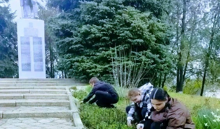 🇷🇺Молодежь Красносельского сельского поселения, учащиеся СОШ 10 навели санитарный порядок на территории мемориала погибшим землякам, героям Великой Отечественной войны