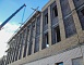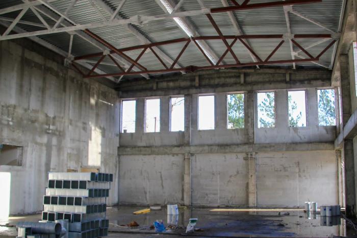 Подрядчик начал установку оконных блоков на первом этаже, ведет монтаж кровли здания будущего нового блока школы.