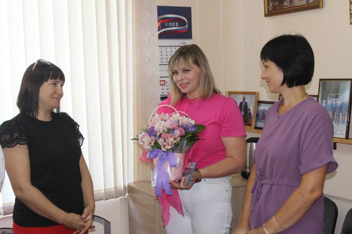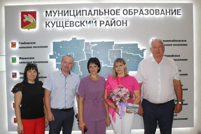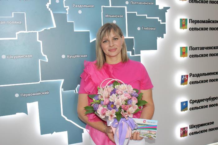 Председатель районного Совета депутатов Александр Туренко совместно с Советом молодых депутатов Кущевского района и  председателем Совета депутатов Кущевского сельского поселения Егором Кривенко  поздравили с днем рождения молодого депутата Полтавченского  сельского поселения  Нину Богославскую.