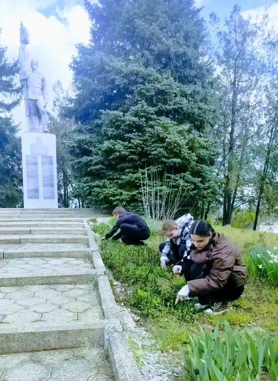 🇷🇺Молодежь Красносельского сельского поселения, учащиеся СОШ 10 навели санитарный порядок на территории мемориала погибшим землякам, героям Великой Отечественной войны
